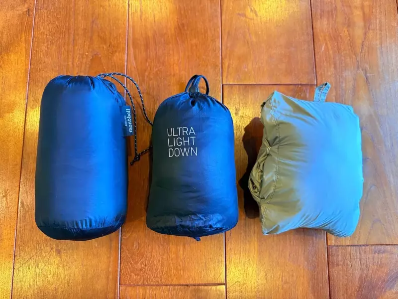 パッカブルは全てのダウンジャケットに備わっている機能です。ユニクロのダウンジャケットはスタッフバッグについたコードロックがポケットと連結することができバックパックをなくしづらい施しです。無印は左右のポケットどちらにもポケッタブルができ、モンベルはスタッフバッグに収納するスタイルです。