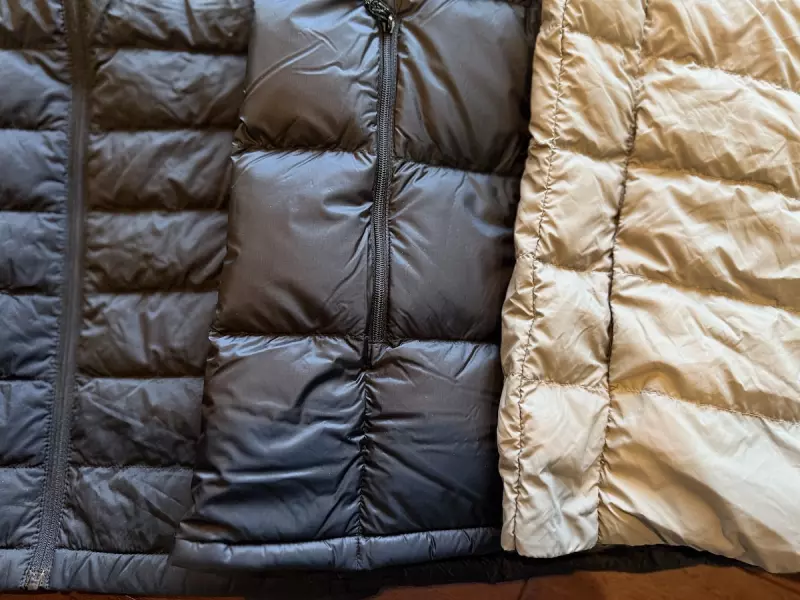 キルティングとはタウン綿が生地の中で偏らないように、ステッチしていることで軽量なダウンジャケットの多くが「塗いつぶし」と形容される、表生地と裏生地を縫い合わせるような技法を使用しています。ユニクロと無印はシングルキルトと呼ばれる塗いつぶしです。これのデメリットは縫製部分にコールドスポットが生まれやすくそれによって保温力が低下します。