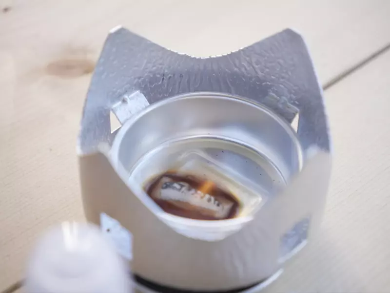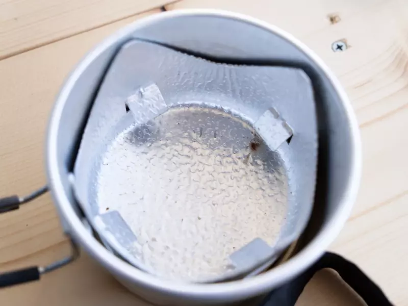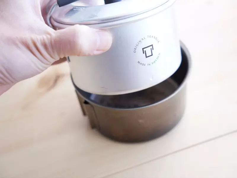 素材はアルミで熱伝導率が良い特徴があります。なのでガスストーブよりも火力が弱い固形燃料やジェル燃料を使用しても比較的早くお湯を沸かすことができます。