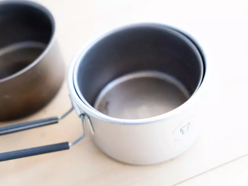 トランギア「マイクロライト」のクッカーは内径10.3cm、外径11.2cmで、軽量なクッカーと組み合わせることができると料理の幅が広がると思って、いくつかのクッカーでスタッキングができるか試してみました。