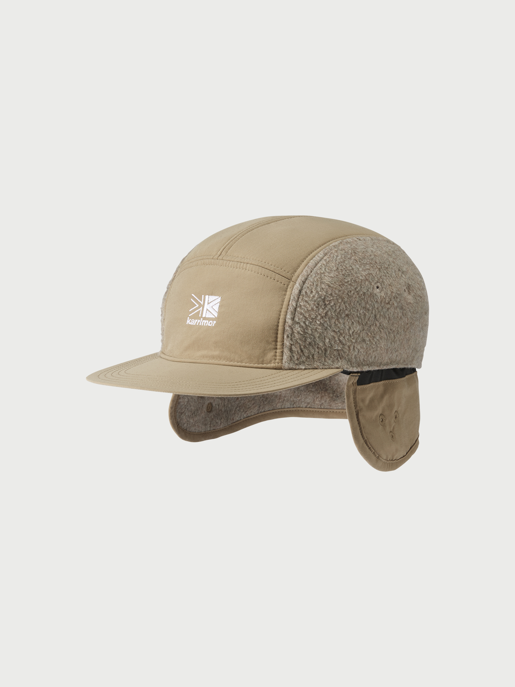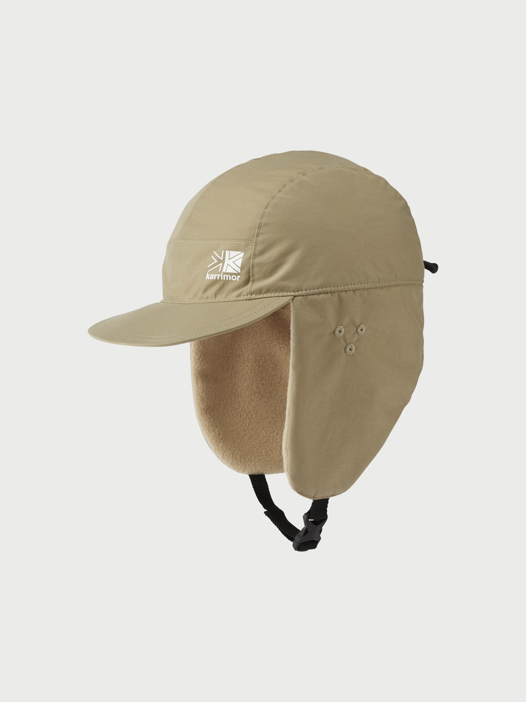 冬のアウトドアに最適な高機能防寒キャップです。表地には防水透湿性に優れたリサイクルナイロンオックス生地を採用し、雪や雨の日でも快適に使用できます。
