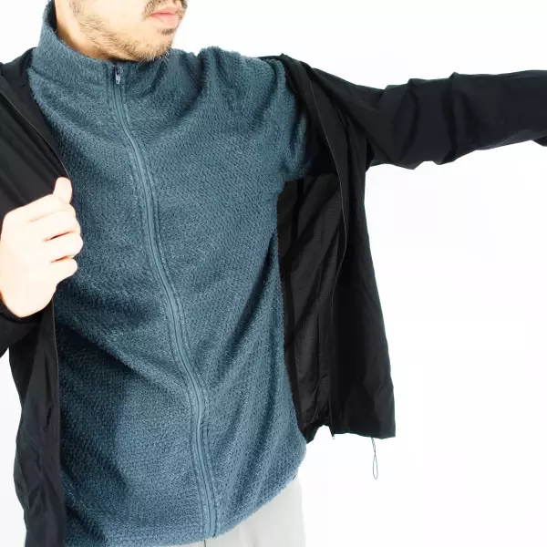 トレイルランニングではバックメッシュTシャツの上から着用し、程よく保温しながら通気性がある、類のないウェアとして気持ちよく行動することができます。暑い季節の登山ではアウターとして、寒い季節の登山ではミドルレイヤーとして着用し続けることができるオールシーズン、オールアクティビティで使えるアイテムです。