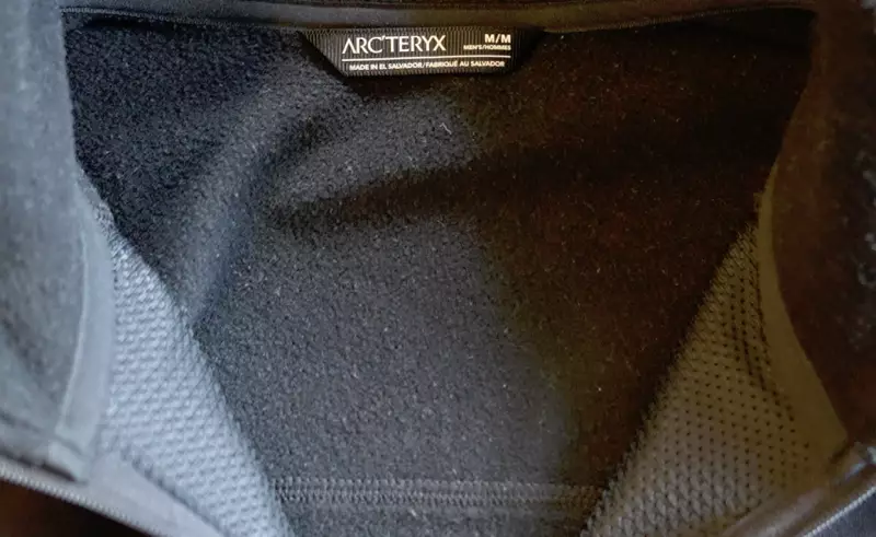 アークテリクスのウェアは裏返すと細かなパネルの組み合わせで体の形に沿った立体裁断がなされていることがよくわかります。腕を振った時の突っ張り感の無さ、動かない時に感じるウェアの重量感の少なさ=着用感が少ない体への程よいフィット感が特徴で、これは着心地の良さだけでなく着用した時の見た目の良さにも貢献しています。