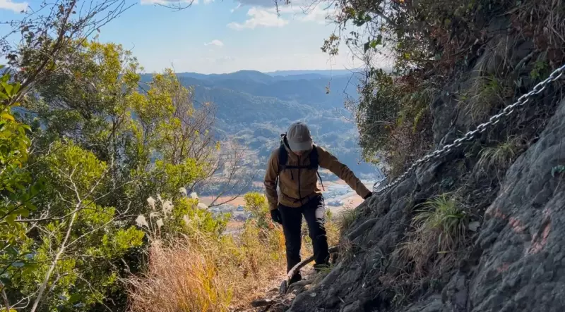 千葉県南房総市にある関東百名山で、標高は336m。登山口のある平群天神社から約40分程で登頂出来るが、山頂直下は急斜面の鎖場がある岩峰、千葉県内で唯一山名に「岳」がつく山。