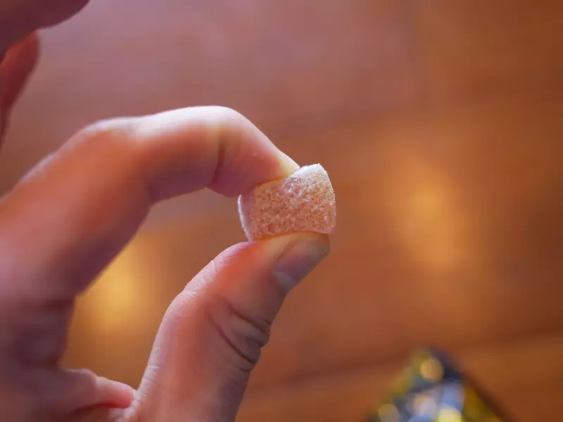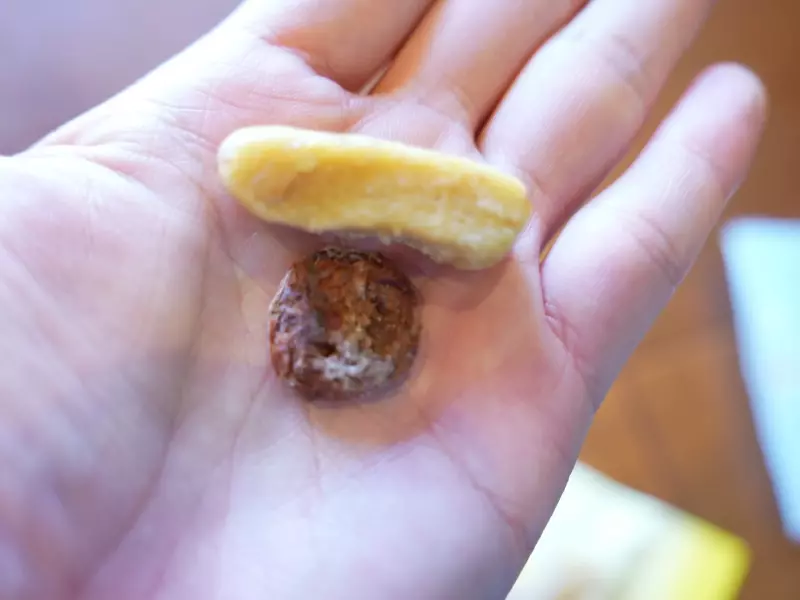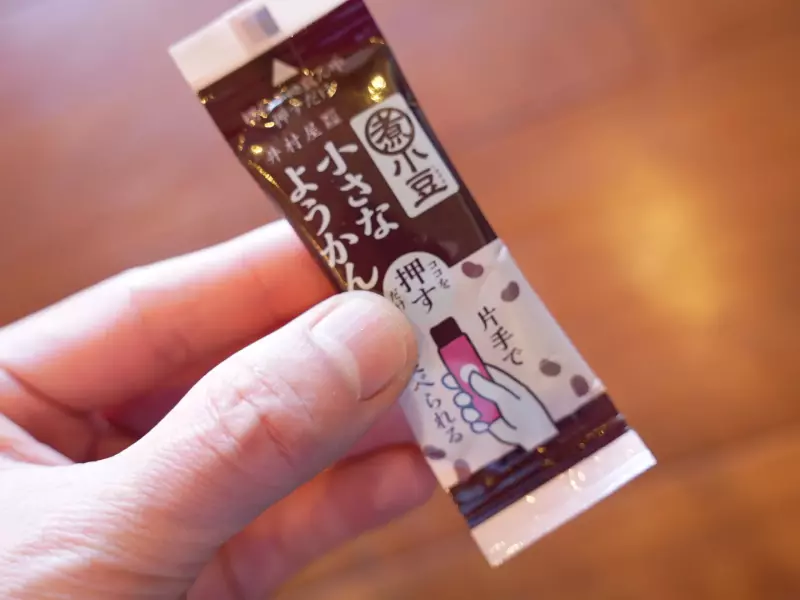 手を汚さず食べることができる「スポーツようかん」「片手で食べられる小さなようかん」は登山やトレイルランニングで人気の行動食の一つです。しかしこれ寒い場所だととても硬くなってしまって「ここを押す」という部分を親指で押しても先端から出てこないことが多いです。