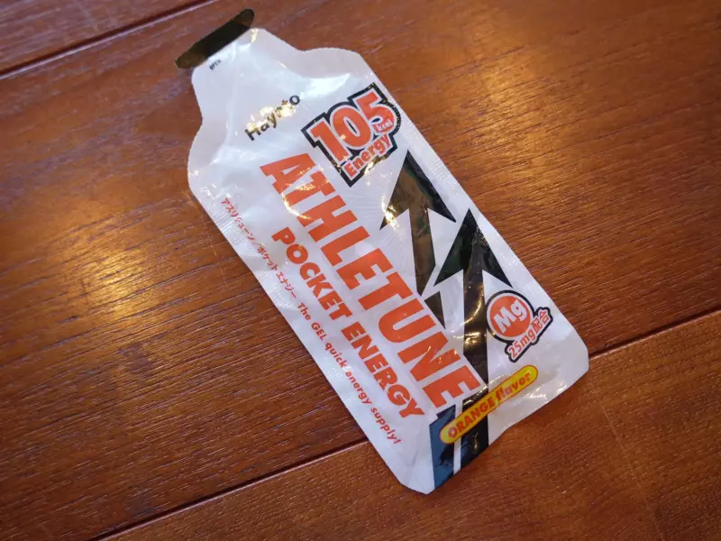 高カロリーでコンパクトに持ち歩くことができることからエナジージェルを行動食に取り入れる方も多いと思います。僕はエナジージェルの強い甘みが苦手で、アスリチューンを取り入れています。これはエナジージェルのように甘すぎず、ベタベタしていないゼリー飲料です。