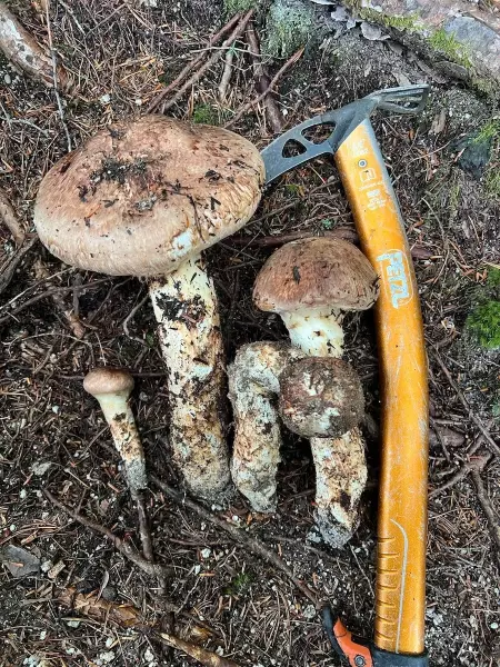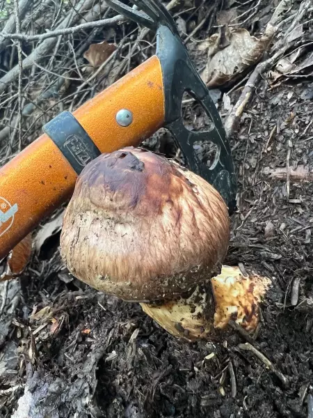 秋の松茸採りでやはり急斜面を右に左に水平に尾根を超えながら下る時には山側の手にこのアックスを握っている。いざキノコを見つけた時には、深く地に潜っている松茸の根元を慎重に、かつ場を荒らすことなく穏やかに持ち上げるにはこのピックが不可欠である。