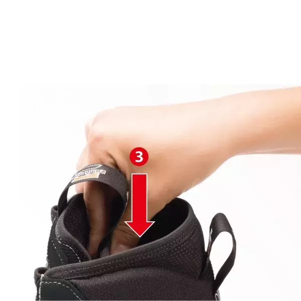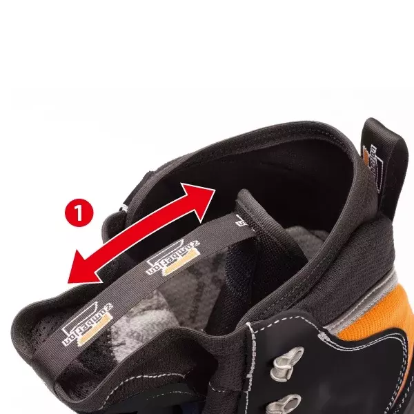 まず、2枚のタンを面ファスナーで張り付けたダブルタン構造により、甲から脛にかけてのフィット感を細かく調整することができます。