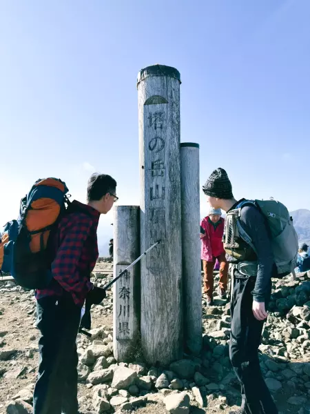流石に疲れたな、と顔を上げたところでやっと塔ノ岳登頂。塔ノ岳の山頂は広く、休憩している人がたっくさんいる。団体さんが多かったな。ここで「お疲れー」とハイタッチしているから、どうやら今日はここまでのピストンらしい。私たちはまだ先に行くので、これは若干の優越感を感じざるを得ない。