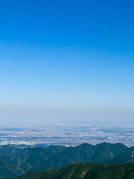 そして塔ノ岳、めちゃくちゃ景色が良かった!以前来た時にはガスガスで何も見えなかったので、丹沢がどうして「展望がいい山」として愛されているのか今よくわかった。表側も裏側も、山頂に木がないので遮るものが何もなく、景色がすっごい。さっきまで海が見えているだけだったのが、街の見える範囲がぐわっと広がって、東京まで見渡せた。ドローンに乗っているかのような、完全に街を「見下ろしている」感覚。ビルが塊になって貝割れみたいに生えているところが、遠くからでもよくわかった。手前にあるのが横浜で、一番高いのはランドマークタワー、名前の通りだね。東京側には二つ大きくビル群があって、海側は丸の内、陸側のが新宿。こんなに遠くからでもそこだけ高い塊が生えていることがわかって、街としてのデカさと他と比べたときの異様さを俯瞰でみた。こんなにも、上から普段住んでいる街の全てを見下ろせたのは初めてだったな。そんで日々東京で生きてるからこそ、あの中に私が立ってたときの景色と、今の景色がリンクする。ビルがあんなにちっぽけに見えると言うことは、その根元に立つ私はもっとちっぽけで、でも今ここにいる私はビルを見下ろしている。なんだか嬉しかった。