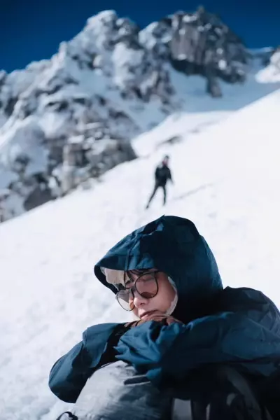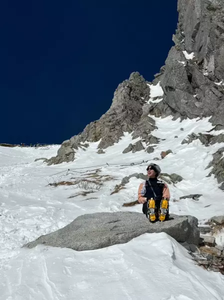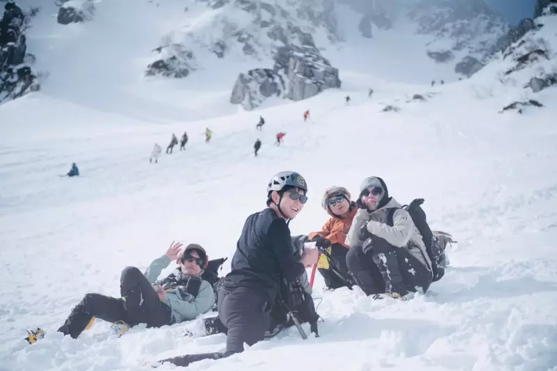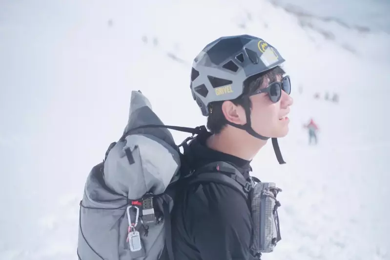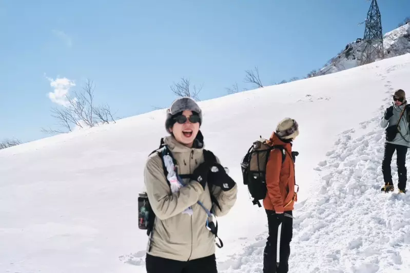 雪山歩くのすごい疲れるんだ。普段より靴も重いし、歩きづらいし。景色が綺麗で写真が撮りたいからというのも嘘じゃないけど、普通に疲れるからすぐ休憩したくなる。