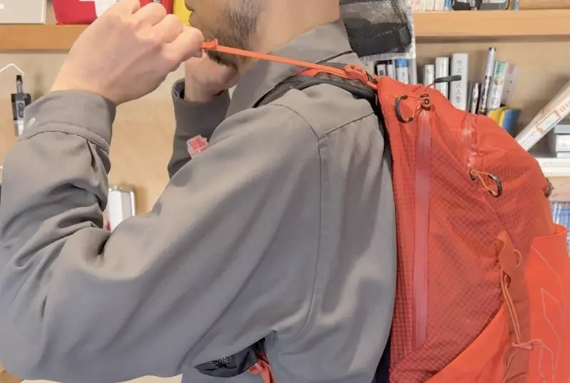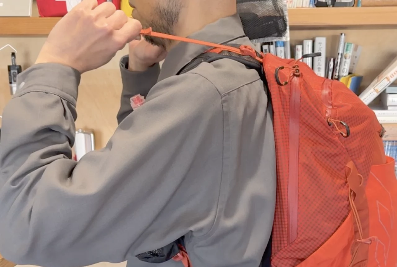 ショルダースタビライザーがあると、ザックの重さを背中の真ん中から上に引きつけることができ、それによって体が安定します。この経験からトレイルランニングやファストハイクなどの距離を伸ばすアクティビティ以外ではショルダースタビライザーがあるザックを選ぶようにしています。
