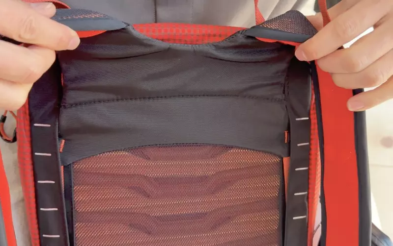 ショルダーハーネスとウエストベルトの汗処理にこだわった素材と同様、背面においてもかなり考えられたパッドと素材が使用されています。