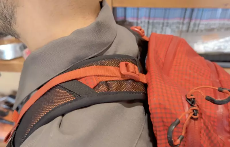 まず1つ目にオスプレーのタロンプロ20にはショルダースタビライザーが備わっています。ショルダースタビライザーのないザックを背負うと、登山をしている最中誰かにずっと肩を後ろへ引っ張られているような感覚になります。だから上半身が丸まってしまって背中や肩が痛くなることが多いです。またガレた登山道を歩いていると上半身が振られやすく歩いていて不安定だと感じることが多くなります。