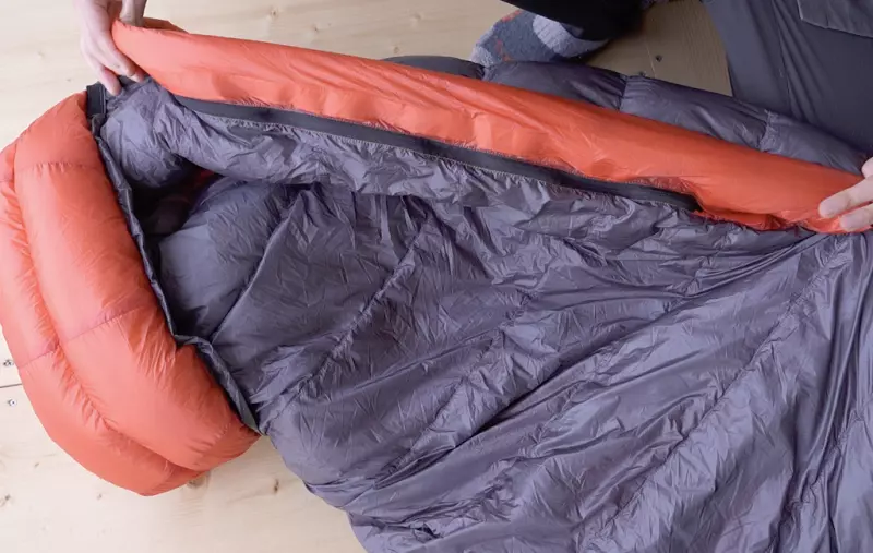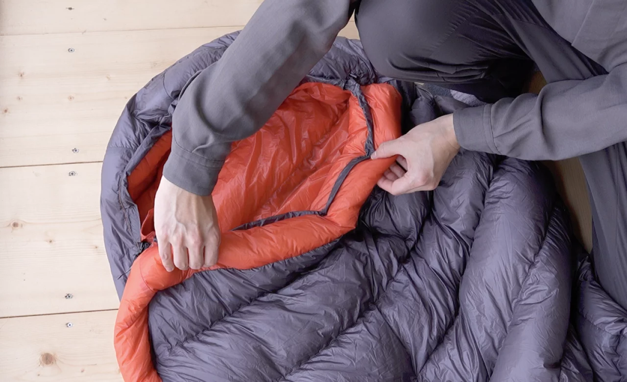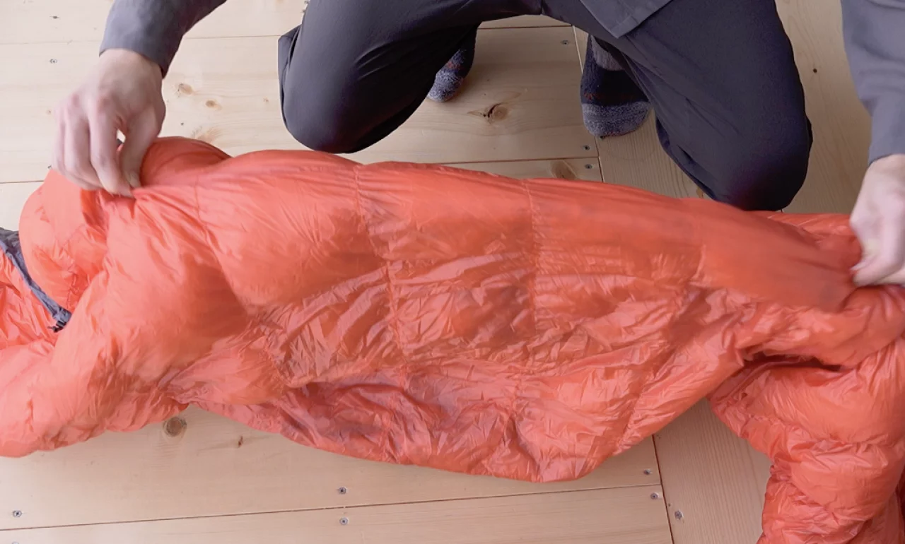 バッグの中で羽毛を移動させ、保温性の調整が可能