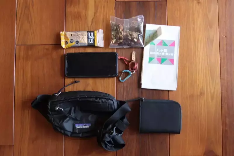 行動中は、スマホ、紙地図、行動食、日焼け止めやリップクリーム、サングラス、グローブなど多岐にわたるこまごまとしたものを入れますが、休憩中は貴重品類がメインで、行動食などはザックに入れておいて構いません。