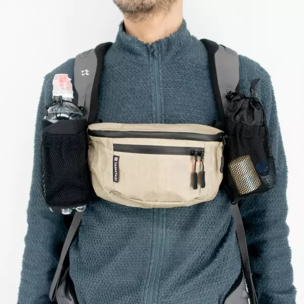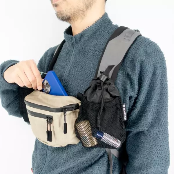 - 使用頻度の高い小物類を体の前面で出し入れできるため、いちいちザックを降ろさなくて済む