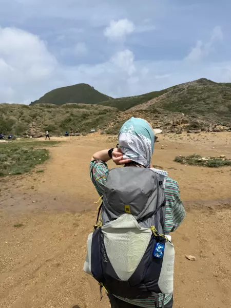 そして何より驚いたのは、少し歩いたらもうとんでもない異世界に入り込めてしまうこのくじゅう連山のスケールである。安達太良山のような火山の雰囲気と、平標山のような平らな緑の斜面と、天狗岳みたいな緩やかな岩の登りと。こういう景色って、普通頑張って山奥まで車を走らせたり、頑張って山深くまで歩いて来ないと見られないんだよな。まあ確かに登山口の時点で山奥まで来ているのだけど、ほんと体感的にはこんなにサクッと街ではない場所に来られるなら、そりゃ九州の人たちは山が好きになるなと思った。どこまでも平らでどこまでも山が続いている。いろんなコースがあると習ったが、確かにそのいろんなコースを歩きたくなると思った。今日はそのほんの一部しか歩かない私たちだけど、このくじゅうの山の入り口に立ててその奥行きを押し測ることができる経験ができたんだってことはとても嬉しい。