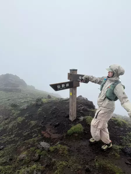普通に一刻も早く山から去りたいので同じ道は辿らずに最短距離で仙酔峡を目指す。途中ガスりながらも色々と面白い景色はあった気がするし、川みたいなのもあって後半の方がジュンは景色を楽しんでいたようだったが、私はこの景色にすっかり飽きてしまい「もう飽きた」と正直にジュンに言ったら笑っていた。優しいね。