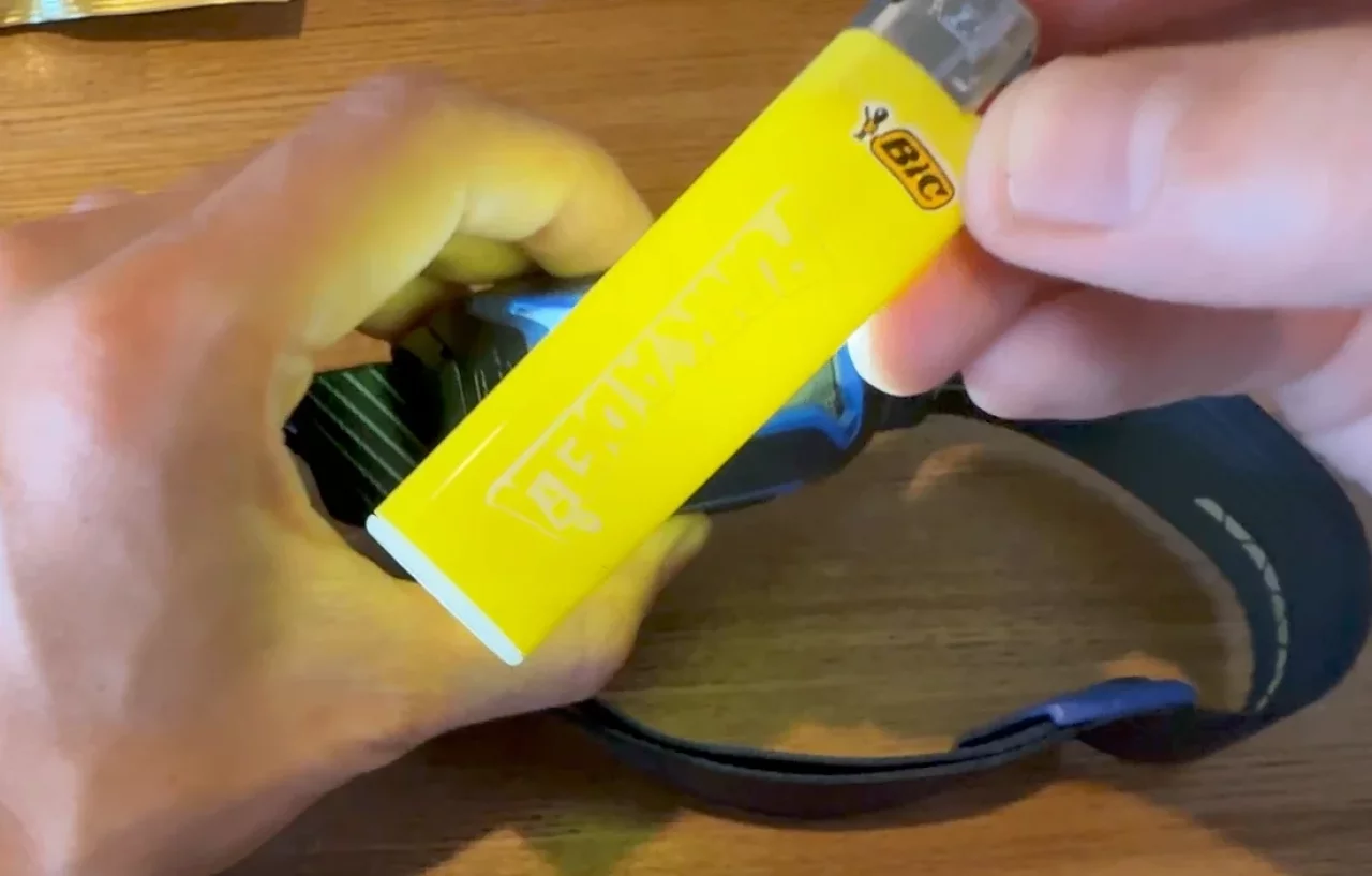 ビッグのライターのガスは、沸点が低いイソブタン(登山に適したOD缶にも使用されている燃料)を使用しているため、低温化でも着火しやすく、炎の安定性に優れています。中身のガス容量は、ライターの裏からヘッドライトを当てると明確に確認できます。