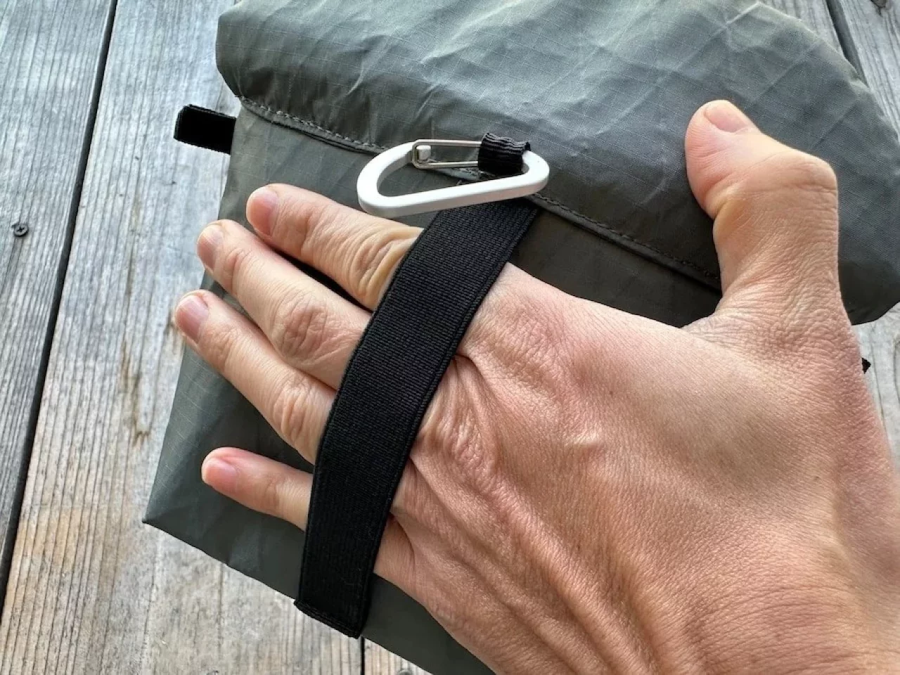 また、ゴムバンドが付いているため手を入れれば食べやすく、ザックのウエストベルトに取り付けておけば行動中にサッと食べることもでき、縦走登山の時間短縮につながります。