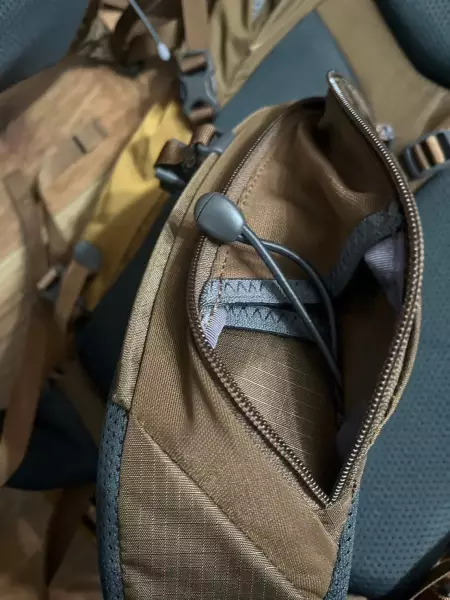 このシステムにより、荷物の出し入れが格段にスムーズになり、パッキング時の調整も容易になった。特に急な天候変化時のレインウェアの出し入れや、行動食の取り出しなどで、その操作性の良さを実感できる。