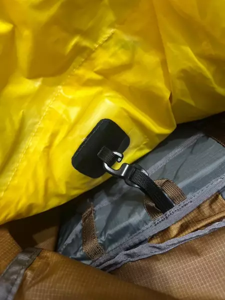 また、このアクアバリアサックはロール部分のベルクロとフックによって装着されている。取り外しが可能となっており、防水機能がいらない山行では外して通常のザックとして使用できる。この柔軟性により、様々なシーンで活用できる汎用性を実現している。