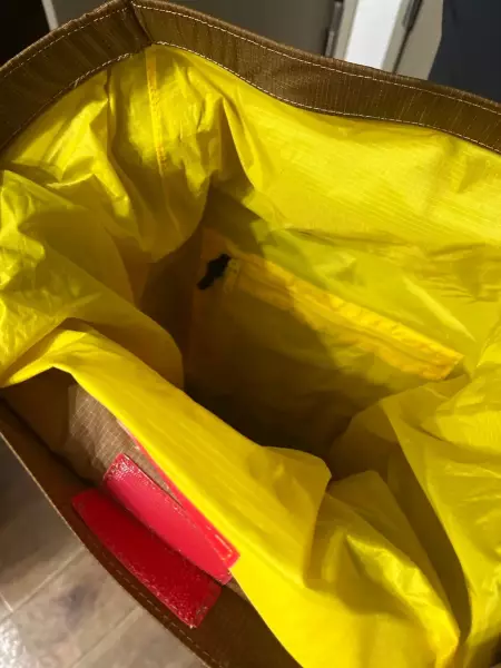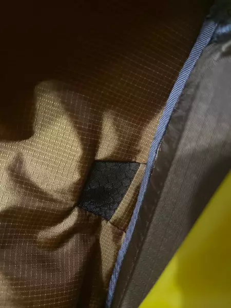本体には100デニール・バリスティックナイロン・リップストップ、底部には210デニール・バリスティックナイロン・リップストップを使用。紡糸の段階でナイロン糸に延伸加工を施し強度を持たせたバリスティックナイロンは、従来のナイロンと比べて同重量で約2倍の引き裂き強度を実現している。