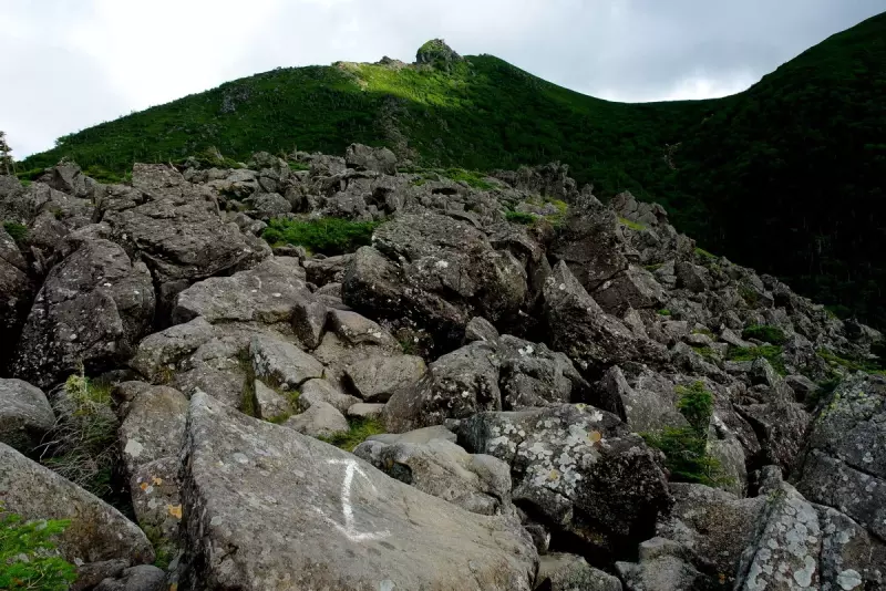東天狗岳(2,640m)から黒百合ヒュッテまでの3km程の天狗の奥庭、自分には果てしなく遠く、頭重く足は攣りかけ、数歩進むだけで息が切れる。立ち止まるたび岩の造形や苔の緑、小さな花に目を奪われ、撮影という名の休憩を繰り返す。カメの遅さにパートナーも呆れ、黒百合ヒュッテのシチューが時間切れで食えないと怒られる。