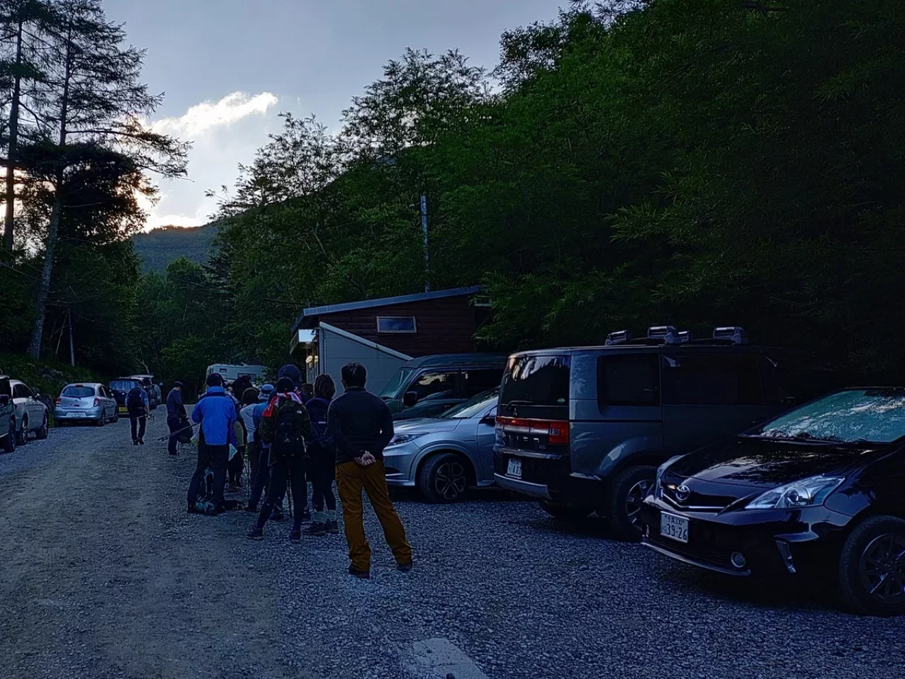 8月中旬、天狗岳登山口駐車場(標高1,870m)の駐車場に到着したのは朝4時前でしたが既に満車に近く。駐車場は約30台分のスペースがあり、無料で24時間利用可能です。夏季や週末は早朝から混雑し、平日でも7時頃には満車、土日祝は5時台で埋まることもあります。施設内には登山者も利用できるトイレがあり便利ですが、満車時は代替手段の検討が必要です。前泊や車中泊での早めの到着がおすすめです。
