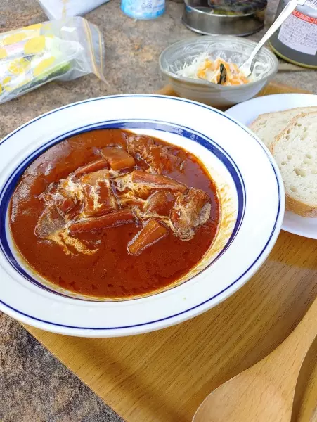 明けて2日目、体調は完全には回復せず、ゆっくりと朝の時間を。秋の気配を運ぶそよ風が心地よい。名物のシチューの香りが小屋の中に漂い食欲をそそる。