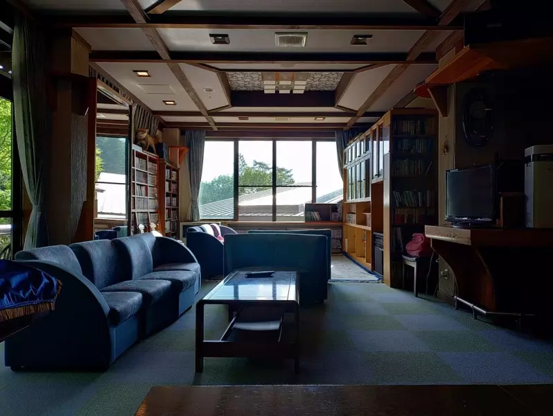 湯上がりには、クラシカルな趣きの深いソファーに身を沈め、静かな時間が流れる。遠くの森のざわめきだけが響く空間で、登山の疲れが静かにほどけていく。