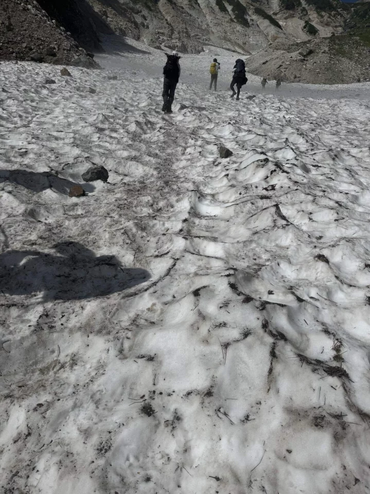 雪渓の距離は決まっているはずなのに、先が見えないとそうは思えない。やっぱりこの道は永遠に続いているように思えたし、それはそれで演出としてはロマンだった。
