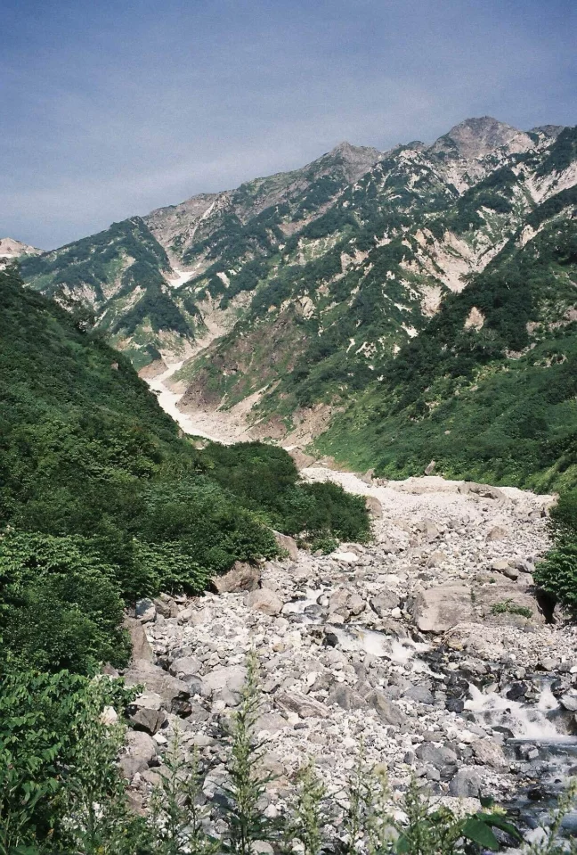 ところどころに大きな岩が落ちている。落石だ。ここに岩が落下してきた瞬間があったんだ。あの左右に聳えるダイナミックな崖から。