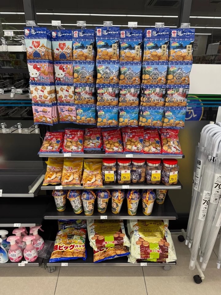 徘徊したくなって隣の商店街を端から端まで歩いたら、コンビニにミレービスケットが大量に売られていて嬉しくなった。ミレービスケットは高知で作られているらしい。