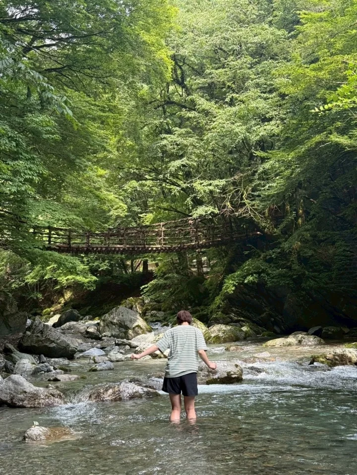 今までの吊り橋史上一番揺れるしちゃんと怖い、ドンキーコングの橋みたいで非常に興奮した。川の流れも綺麗。