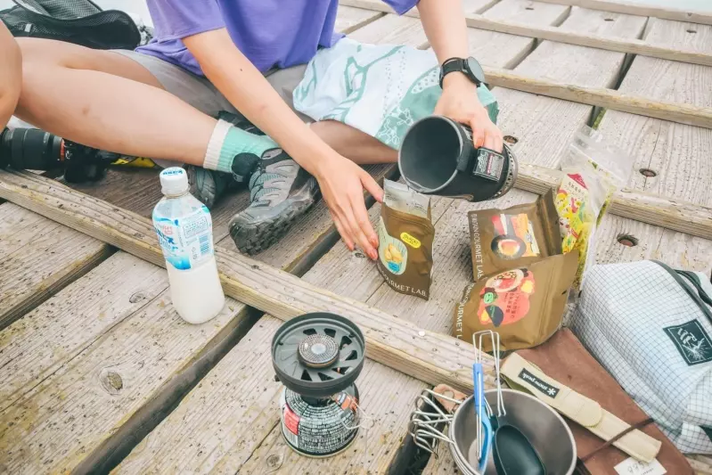 持ってきたご飯を山頂で調理して食べて、ぐうたらした。