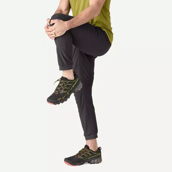 シルエットは裾に向かって細くなるジョガーズタイプで、風のバタつきがなく、トレイルランニングをした時には足元を視認しやすく、気に入っています。