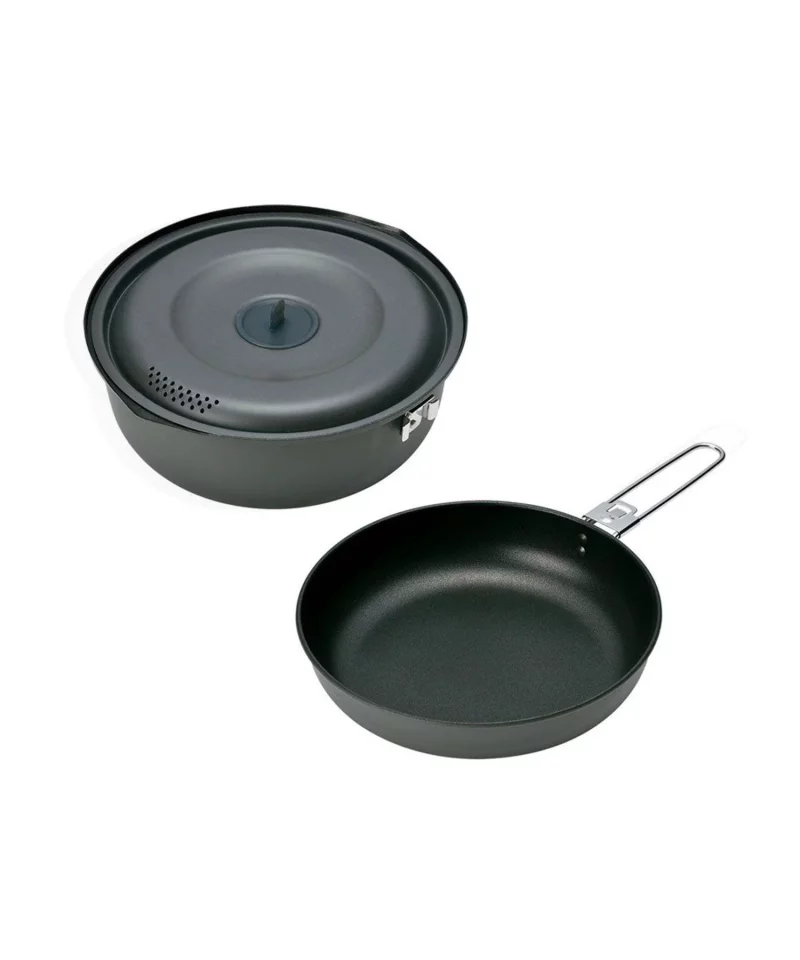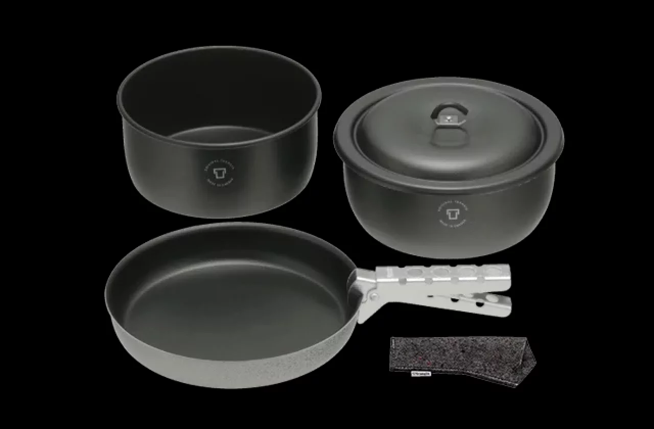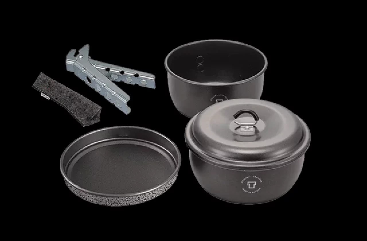 一般的な登山で持ち運ばれるクッカーは軽量化が重要なため、必要最小限の大きさと組み合わせになっております。 今回ここで紹介させていただくクッカーセットの定義はソロはもちろん、複数人でいくつかの調理を想定した軽量・コンパクトな調理器具のセットとなります。一般的に鍋(ポット)、フライパンまたは蓋などが組み合わされて販売されており、スタッキングできる設計になっているため持ち運びに便利です。また取っ手が脱着式となっているモデルも多くあります。