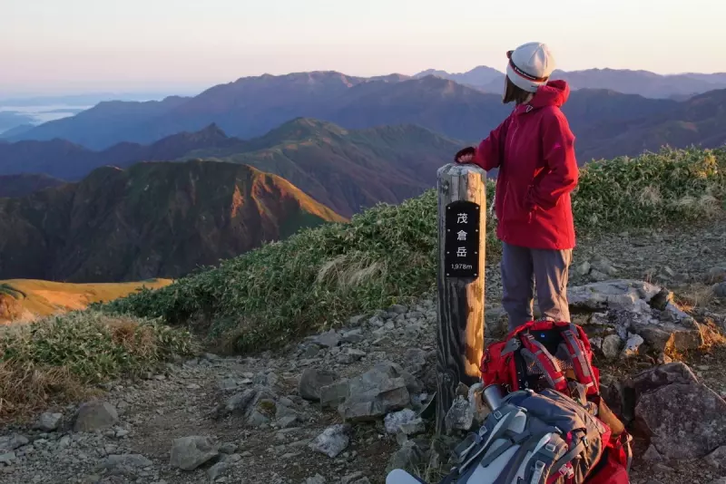 ■茂倉岳の夜明け茂倉岳(しげくらだけ)は標高1,978m。谷川連峰の主脈に位置し、谷川岳から一ノ倉岳を経てたどり着く穏やかな山容のピーク。晴天時には苗場山や越後三山、遠く北アルプスまで望めることもあります。山頂直下には茂倉岳避難小屋が建ち、我々はそこに宿泊。水場にトイレ有りと谷川連峰縦走の中継点として最高に良いとこです。