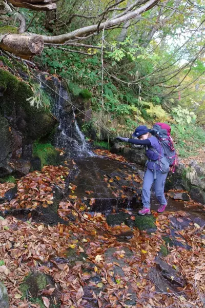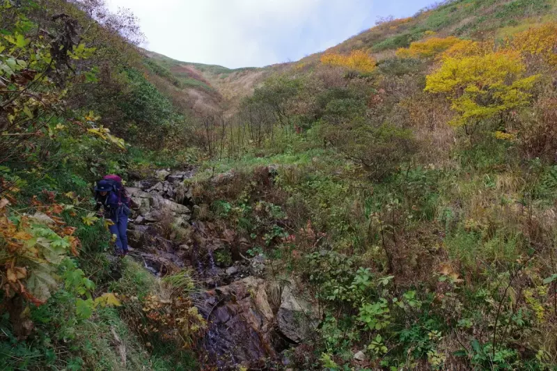 幾度となく訪れる小さな沢の徒渉は滑りやすく結構厄介。
