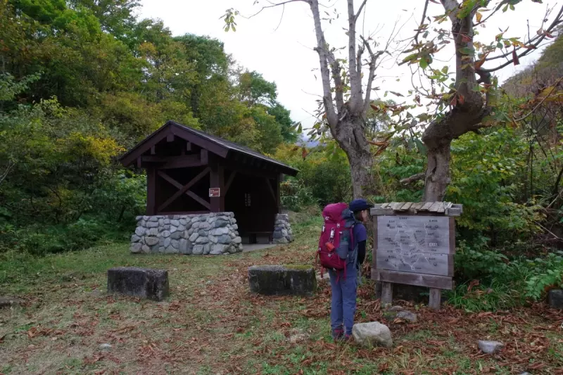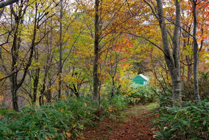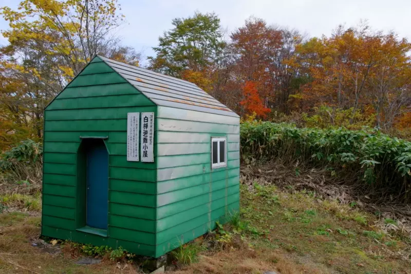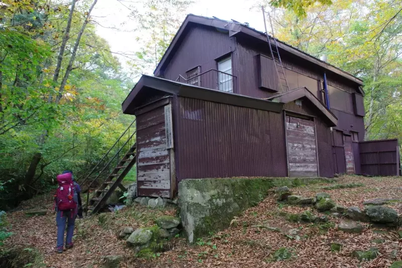 白樺避難小屋は、谷川連峰の稜線上にひっそりと佇む無人の避難施設。白樺林に囲まれ、秋には赤や黄の葉が小屋を包む。緊急時のみ使用可能.