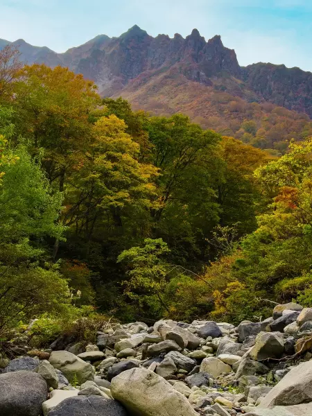 ■仰ぎ見る笠ヶ岳──紅葉が彩る谷川連峰の静寂