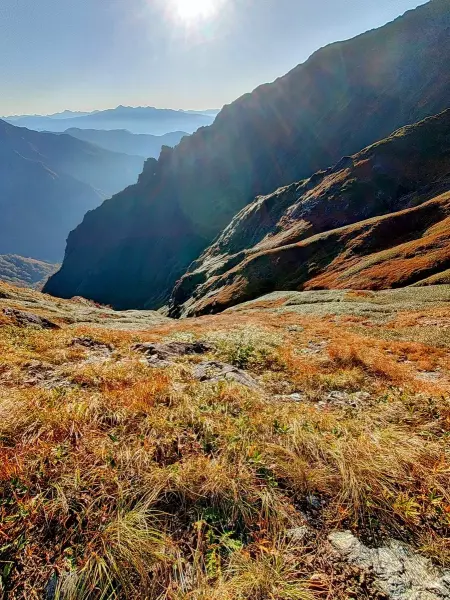 早朝から歩くこと14キロ、10時間、晩秋の紅葉に彩られた谷川岳・馬蹄形ハーフ縦走を無事に完歩。日没と日の出に染まる無限の稜線、一ノ倉ノゾキの緊張感、武能岳からの大らかな稜線に心が躍りました。2日目の快晴で白毛門 に笠ヶ岳、谷川連峰の紅葉斜面はさらに鮮やかに。親子で歩いた特別な2日間の山旅でした。