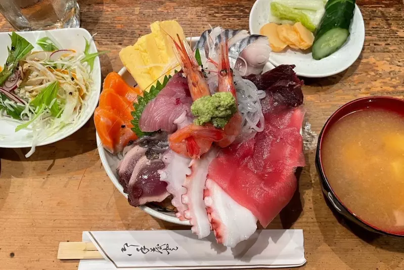 水上の路地裏に、昭和の香り漂う「だるま」。海鮮丼のネタは新鮮で、焼き鳥丼は香ばしくてたまらない。ぶっきらぼうに見える店主も話してみると気さくで、地元に通じた裏話も聞け、思わず長居したくなるあたたかさ。下山後ふらりと立ち寄りたい、そんな味と空気のある店です。お洒落とか全く無縁、若いカップル向きではないのはご承知おきを。