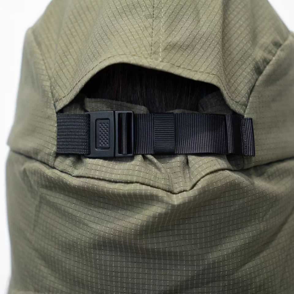 42gと非常に軽く、被っていることを忘れるほどの着用感です。被ってもよし、持ち歩いてもよしの傾向性で、小さく折りたたんでザックに収納しておけます。