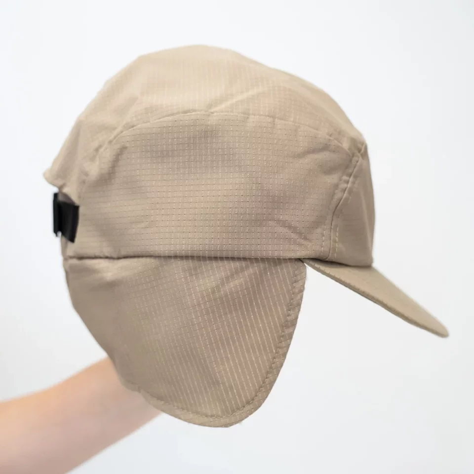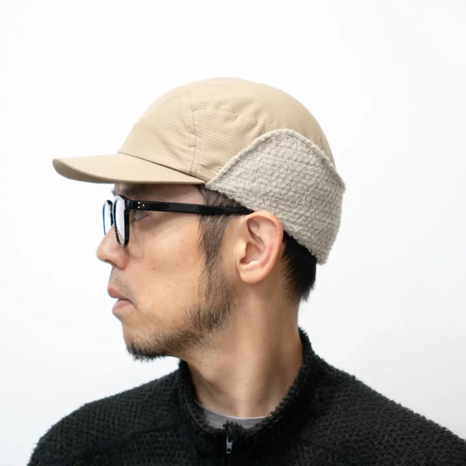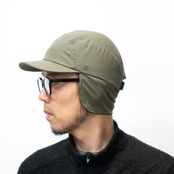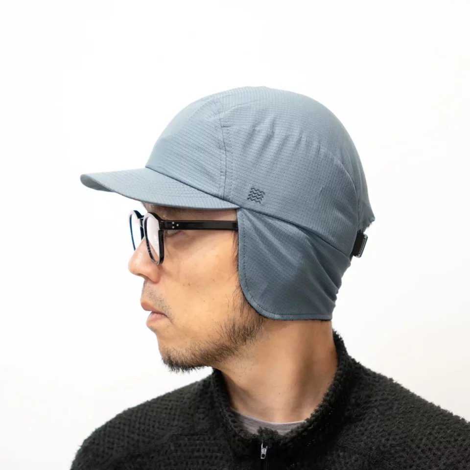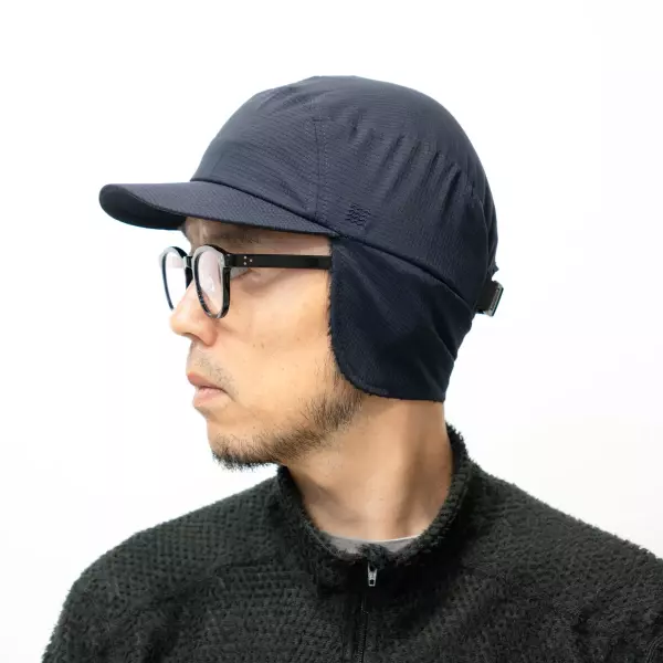 冬の稜線や風の強い日、最初に冷たさを感じやすい耳や側頭部をしっかり守りながらも、行動中にこもる熱や汗を効率的に逃す構造のキャップです。