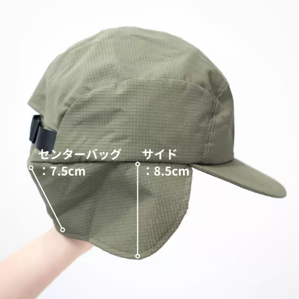 - 素材:Polartec® Alpha Direct 90(耳・側頭部)、COOL DOTS®(頭頂部)