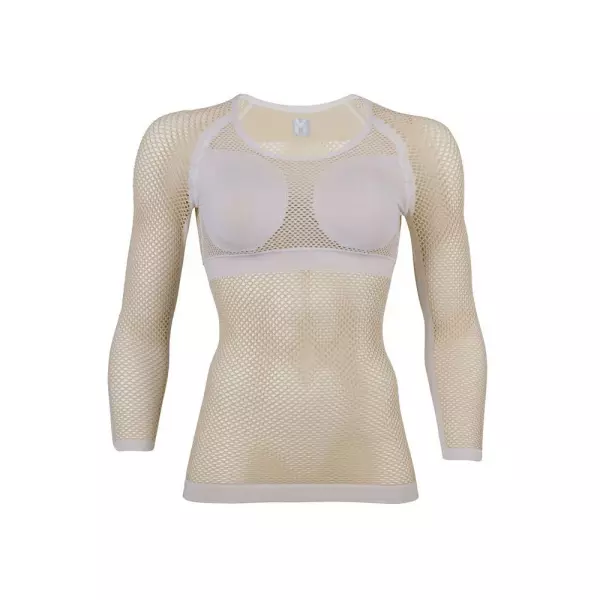 通称「アミアミ」と呼ばれている網タイツ型アンダーウェアです。太めのポリプロピレン糸で構成された立体メッシュで、汗をべースレイヤーへと移し、肌をドライに保ちます。ドライレイヤーの上に着用するべースレイヤーは、体にフィットするシルエットで汗を吸い上げる機能に優れたものを選ぶ必要があります。
