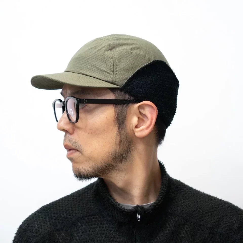 耳と側頭部の生地には、ポーラテックアルファダイレクト90を採用し、保温性と通気性を両立させています。頭頂部は無数のマイクロ孔を持つ通気素材で、行動中の熱や湿気を排出します。
